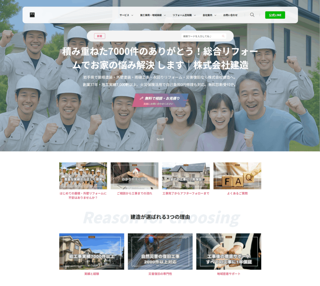 - 施工事例を前面に出した信頼感のあるデザイン